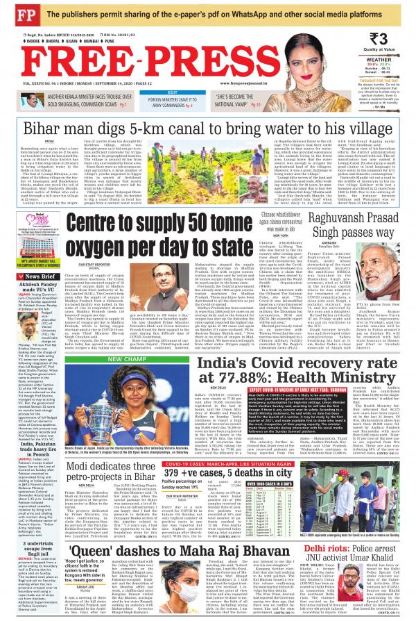 Free Press Indore / Free Press Indore Edition 01 01 70 Newspaper In English By Free Press Journal Read On Mobile Tablets / Jun 29, 2021 · nemawar (dewas district):